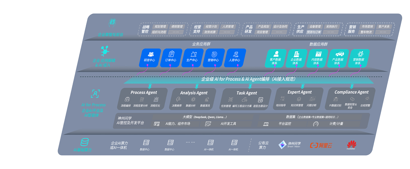 壹号平台问学智车解决方案是一套基于AI技术的汽车行业智能化系统,,,覆盖从底层算力到顶层AI应用的全栈方案。。。方案由算力层、、模型层和应用层组成:算力层,,,,方案支持多种一体机配置,,,具备云端灵活部署、、多云适配以及动态优化计算资源的能力;模型层,,,壹号平台问学平台版提供了企业级AI应用一站式构建与管理平台,,,支持基于后训练强化技术的汽车企业专属模型的训练、、、、评测和运营;应用层,,,,壹号平台问学DeepSeek版提供包括超级员工、、、智能招采、、智能营销、、智能客服、、、、AI for BI等一系列解决方案,,可助力汽车行业实现数字化转型,,,,让管理更智能、、、、响应更敏捷。。。